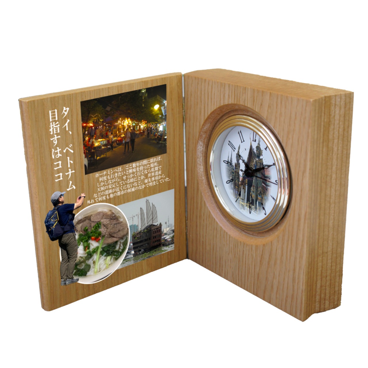 ブック型置き時計 フリーデザイン ロゴ イラスト マーク オリジナルデータ入稿OK 記念品、周年記念、退職祝いにおすすめ