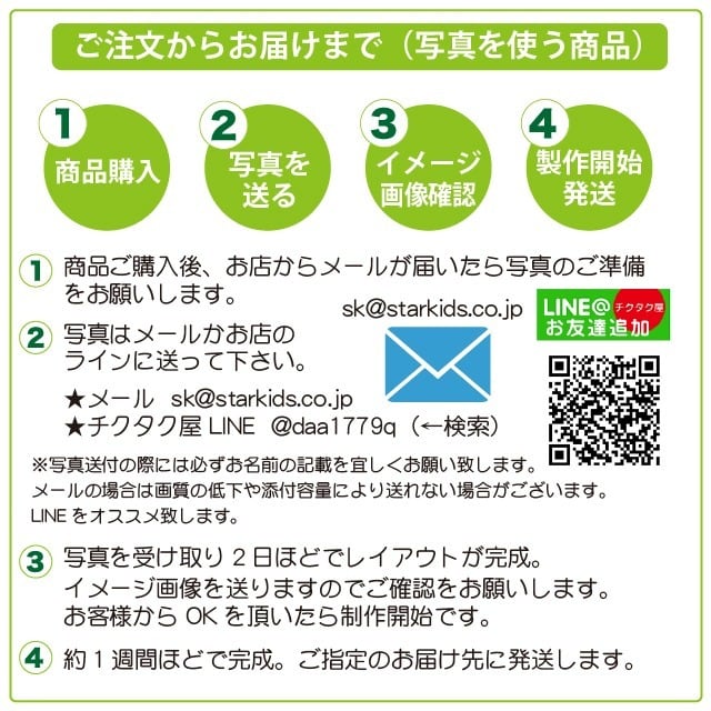 写真画像の添付はメールか当ショップLINEアカウントにて宜しくお願い致します。