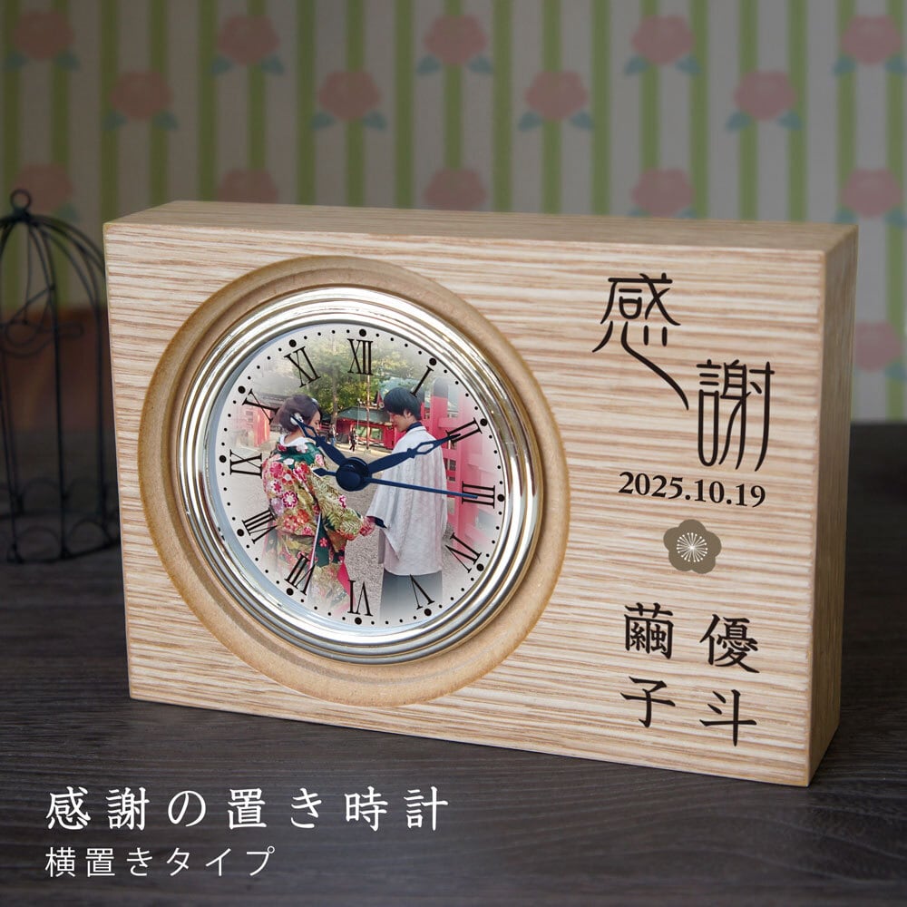 感謝の置き時計 横置きタイプ 子育て感謝状 写真時計