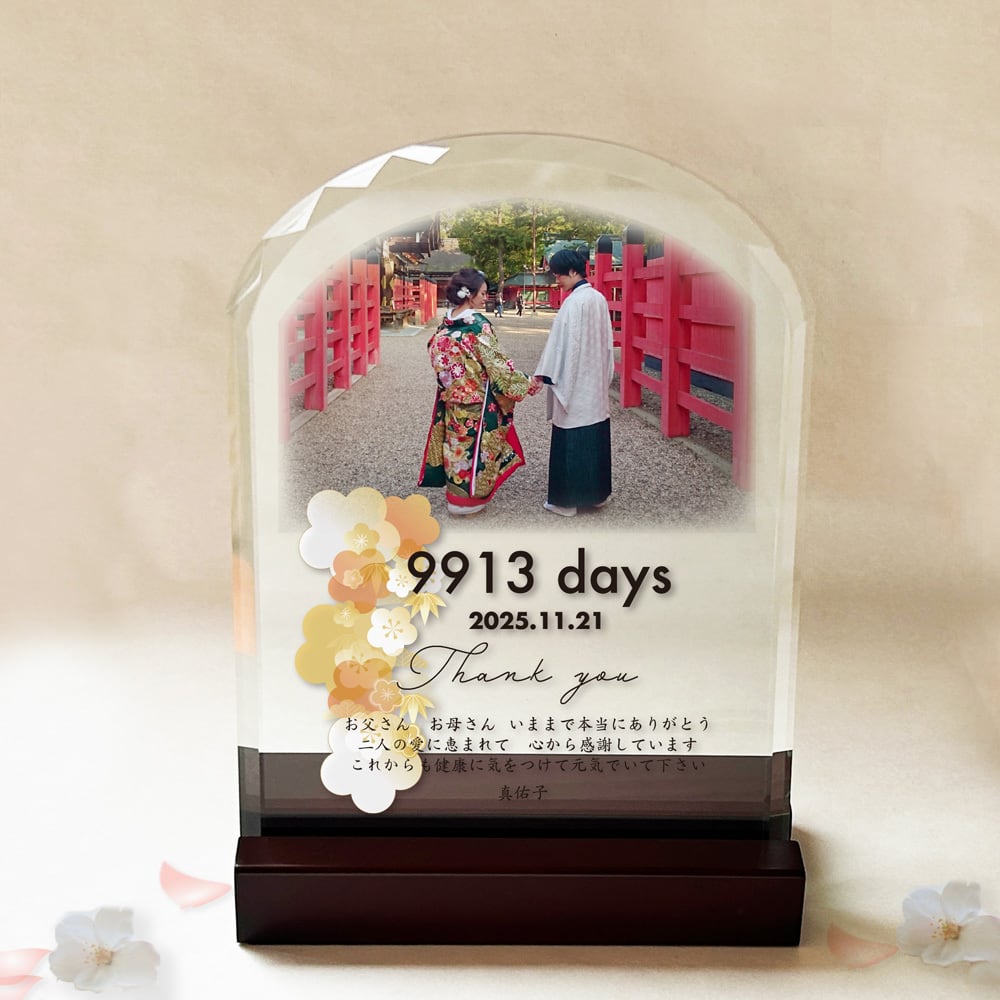 結婚式の両親への記念品贈呈や、結婚祝い、結婚記念日にお使い頂けます。